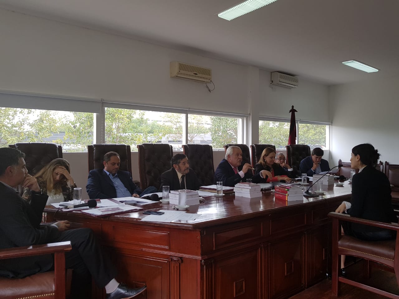 El presidente de la Corte, Guillermo Catalano, junto a los consejeros durante las entrevistas a los concursantes.