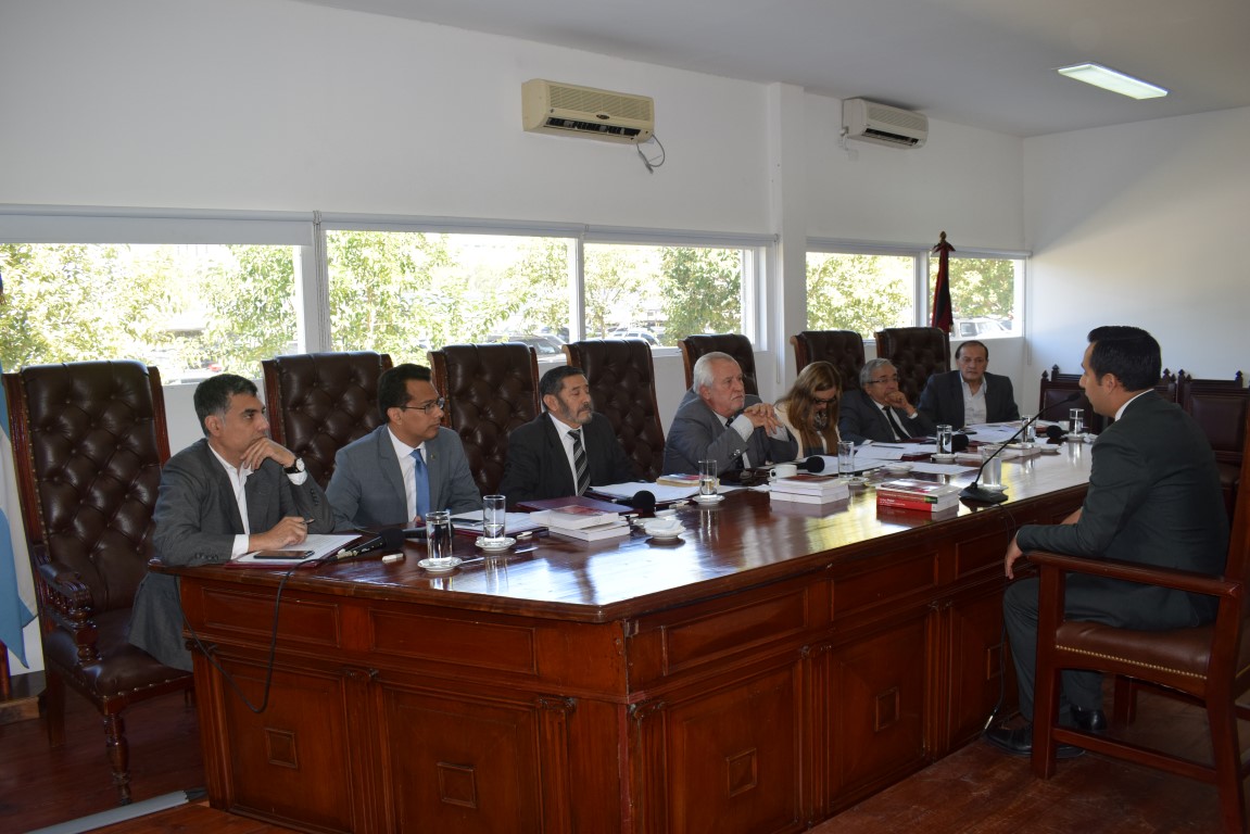 El presidente de la Corte, Guillermo Catalano, junto a los consejeros, en la reunión informativa en que se dio a