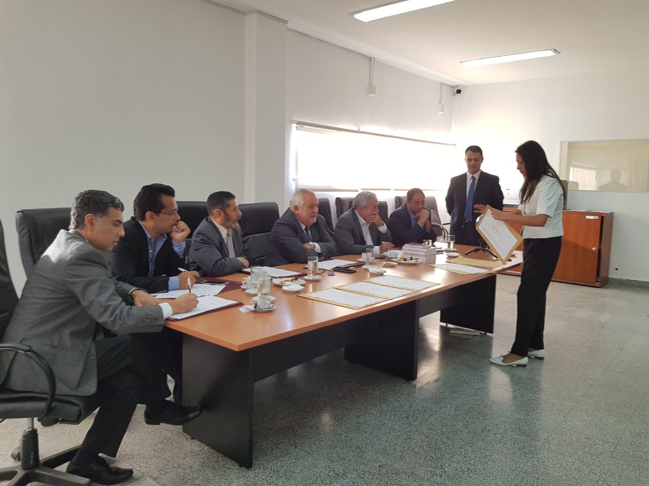 El presidente de la Corte, Guillermo Catalano, junto a los consejeros, durante las entrevistas a los profesionales interesados en cubrir