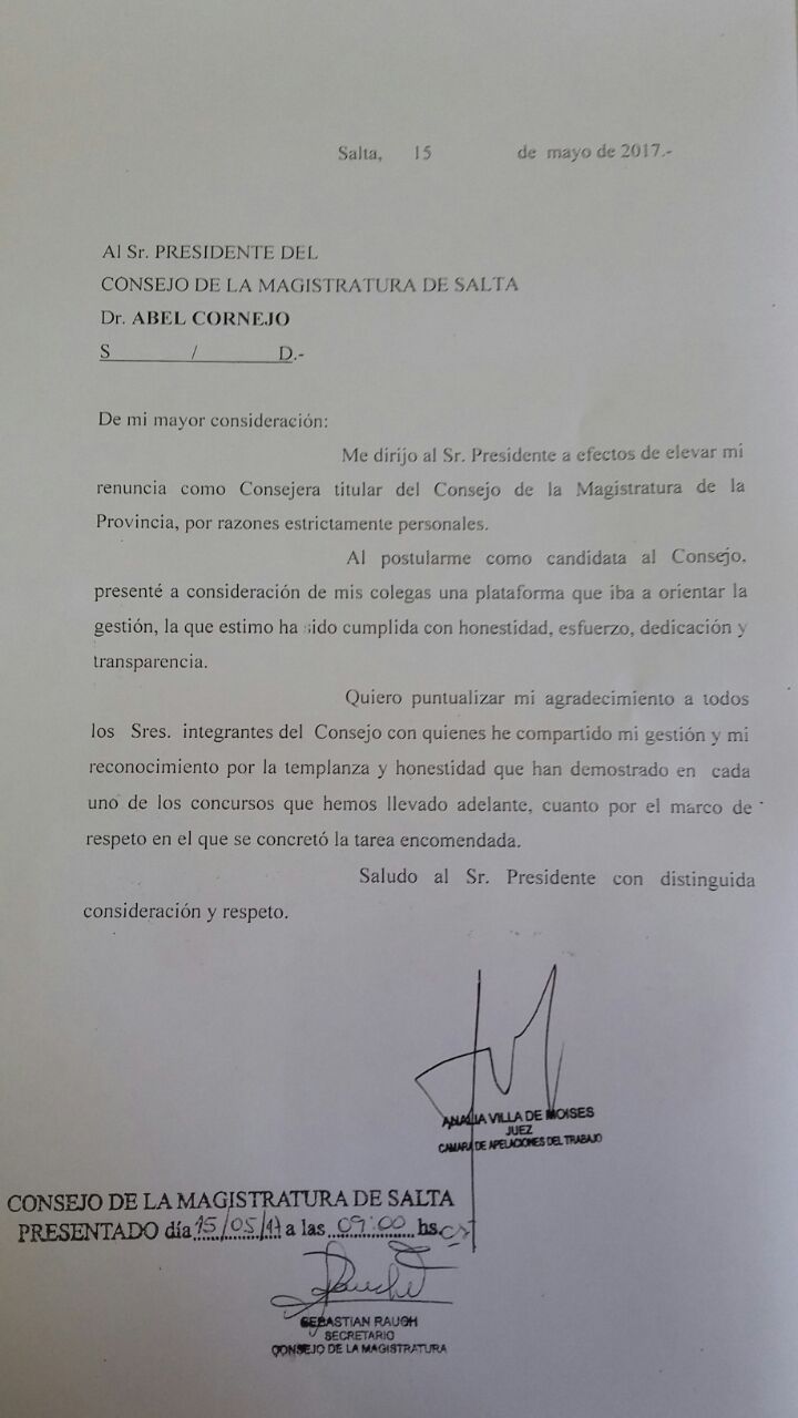 La nota de la dimisión a su cargo fue presentada esta mañana.
