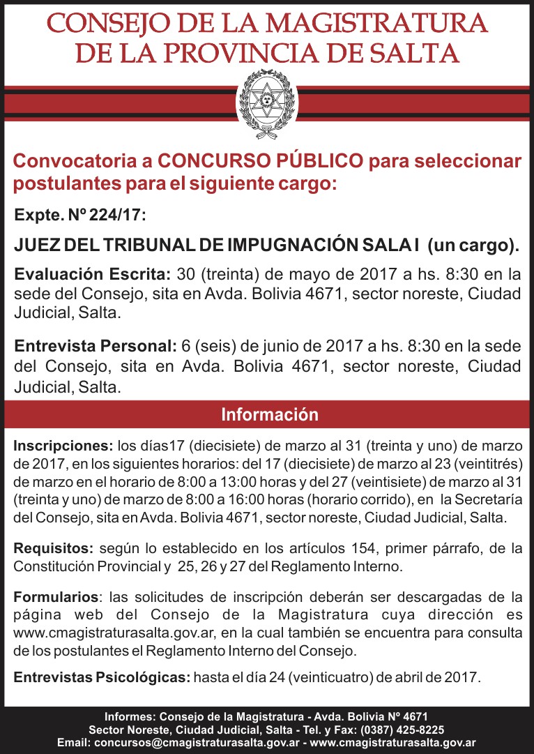 Se trata de la vacante para fiscal Penal del Distrito Centro y juez de Primera Instancia del Trabajo de Cuarta