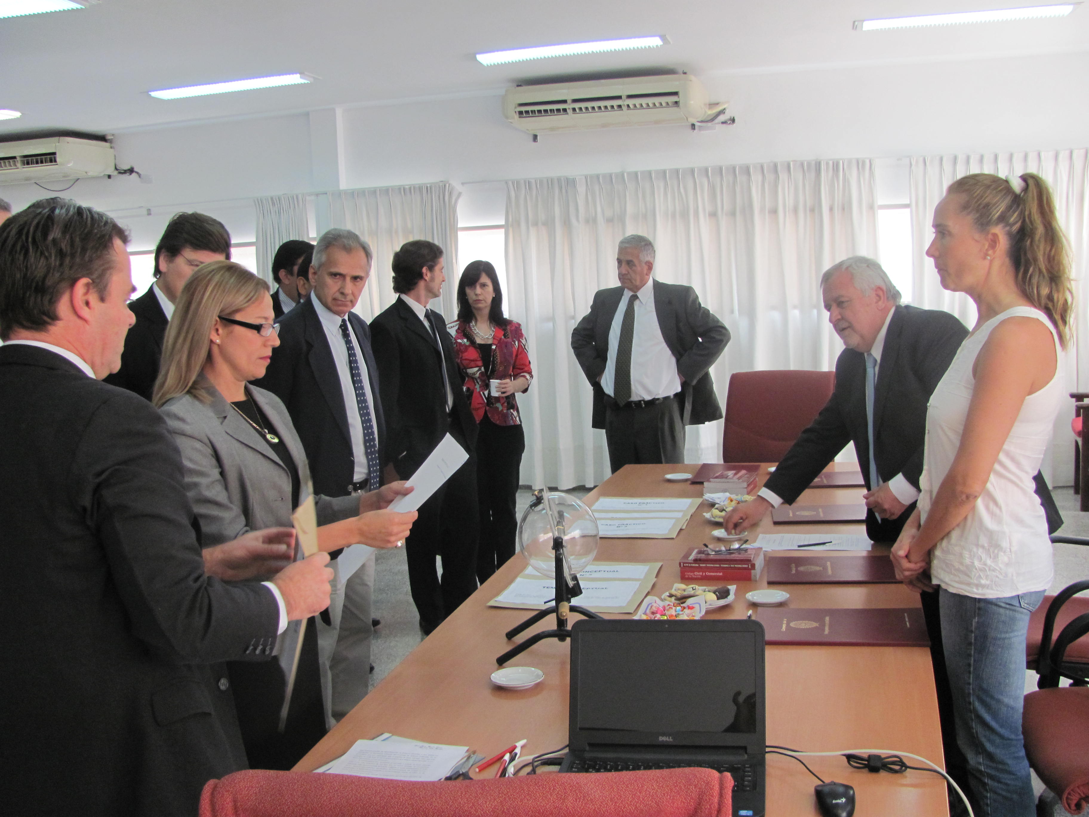 El tribunal presidido por el juez de la Corte, Guillermo Catalano, junto a los concursantes en el momento del sorteo