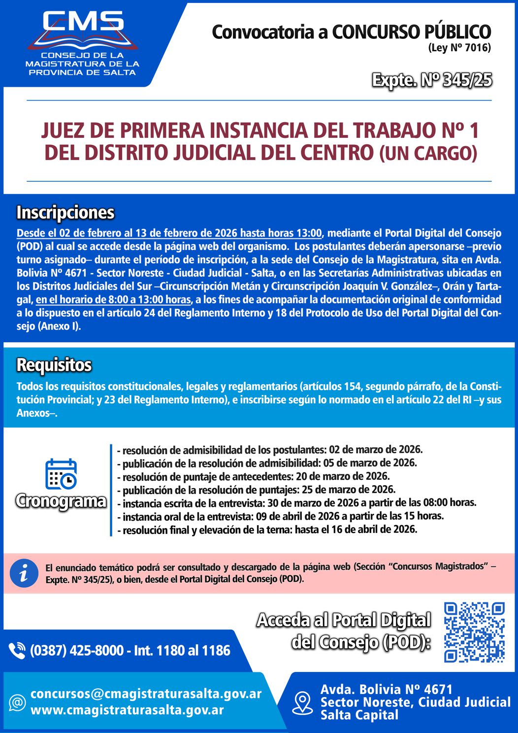 El día 26/11/2025 se avanzó con la instancia escrita para cubrir el cargo de Fiscal Penal del Distrito Judicial del Centro – Ley 7016