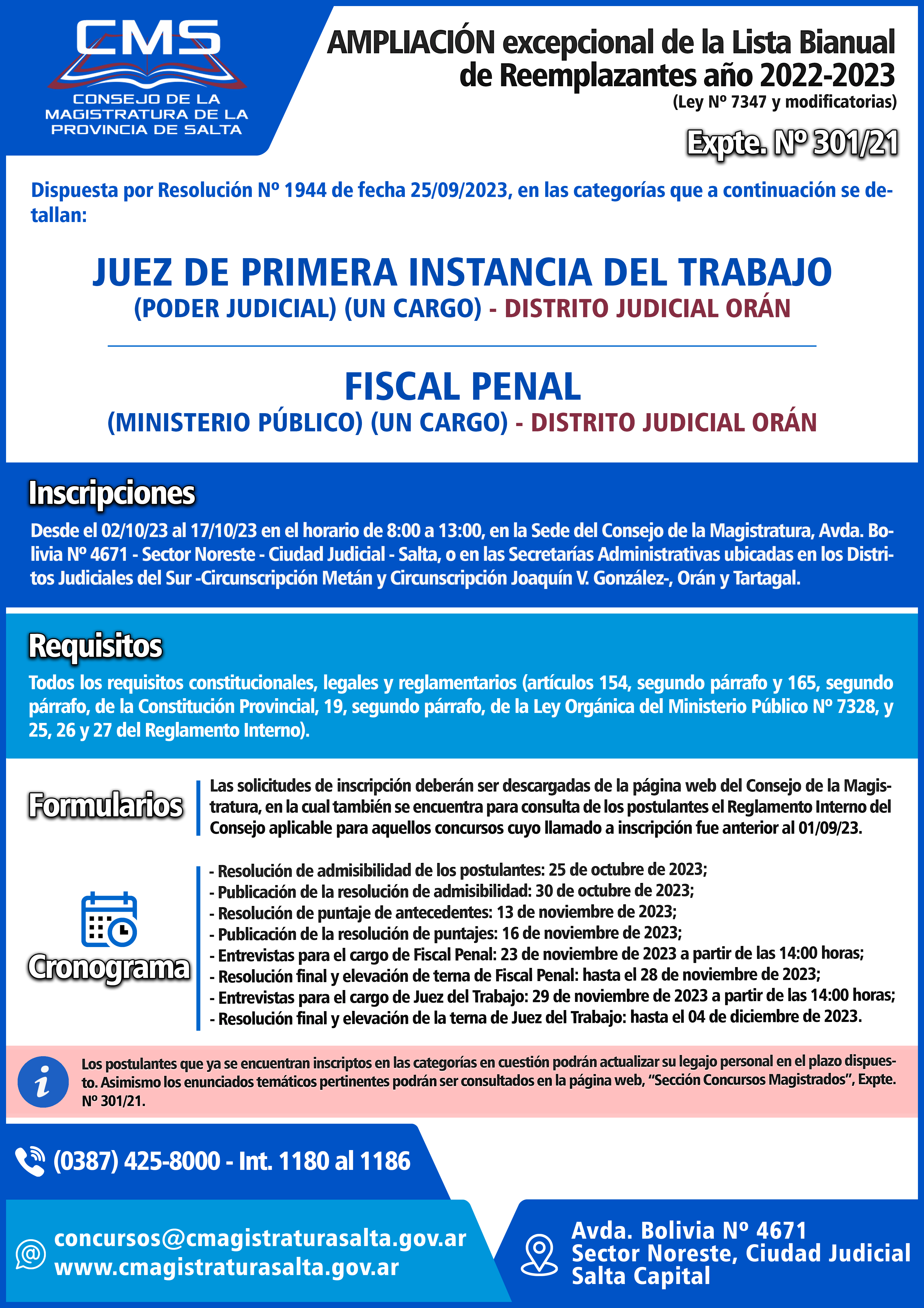 Se declara desierto el Concurso para el cargo de Reemplazante de Juez de Primera Instancia del Trabajo Nº 1 del Distrito Judicial Orán