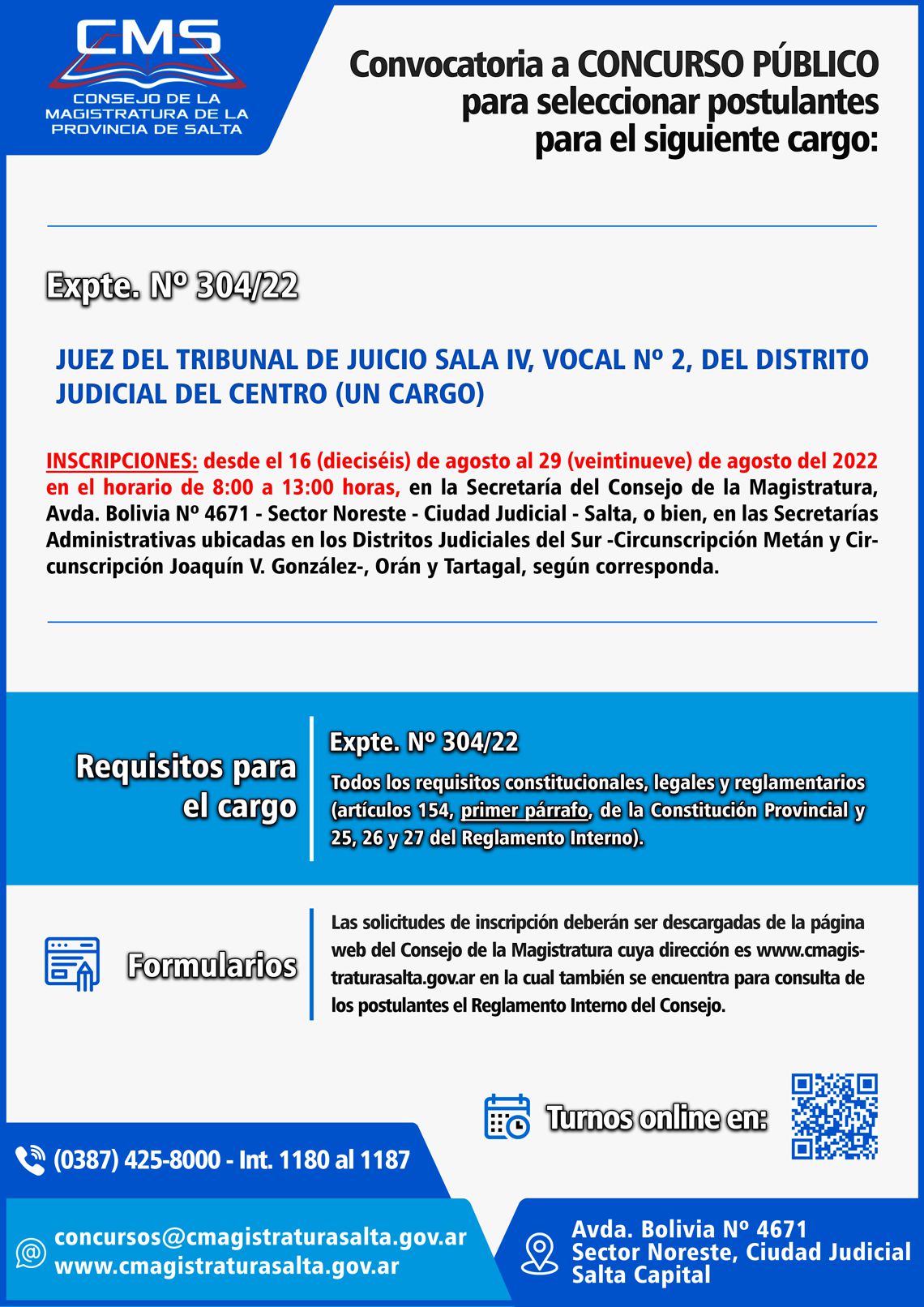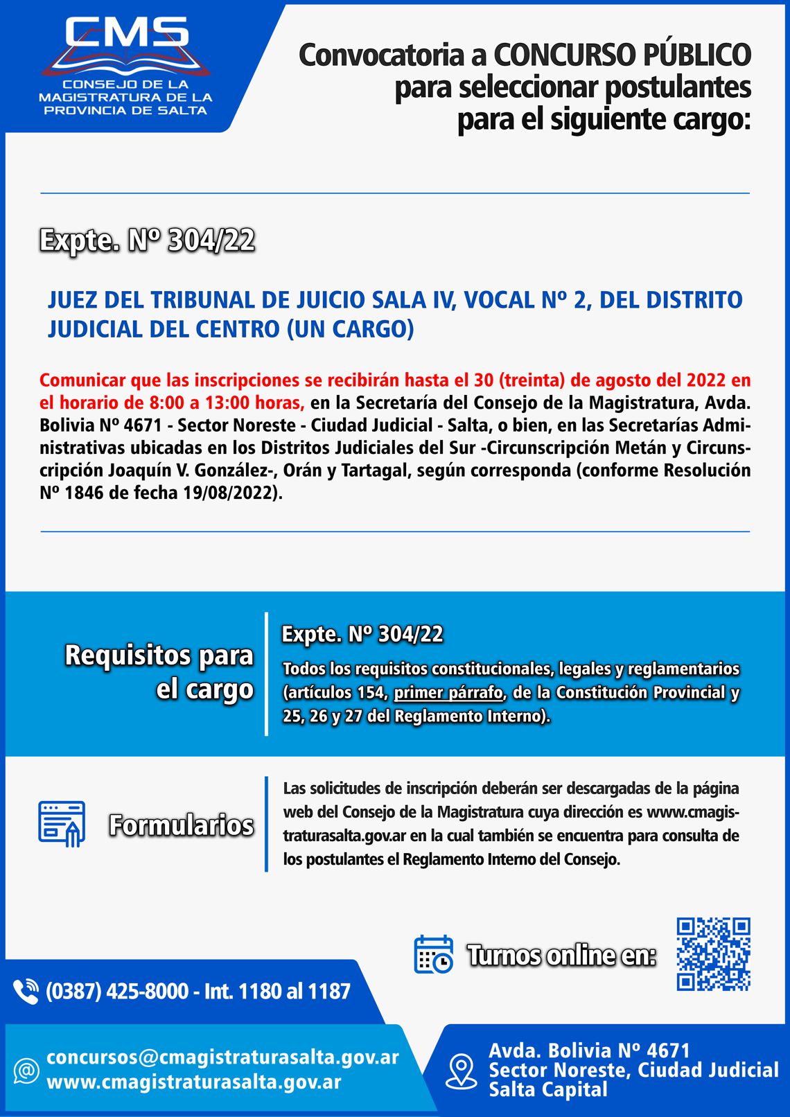 A partir del 16 de agosto se recibirán las inscripciones para el cargo de Juez del Tribunal de Juicio Sala IV, Vocal Nº 2, del Distrito Judicial del Centro