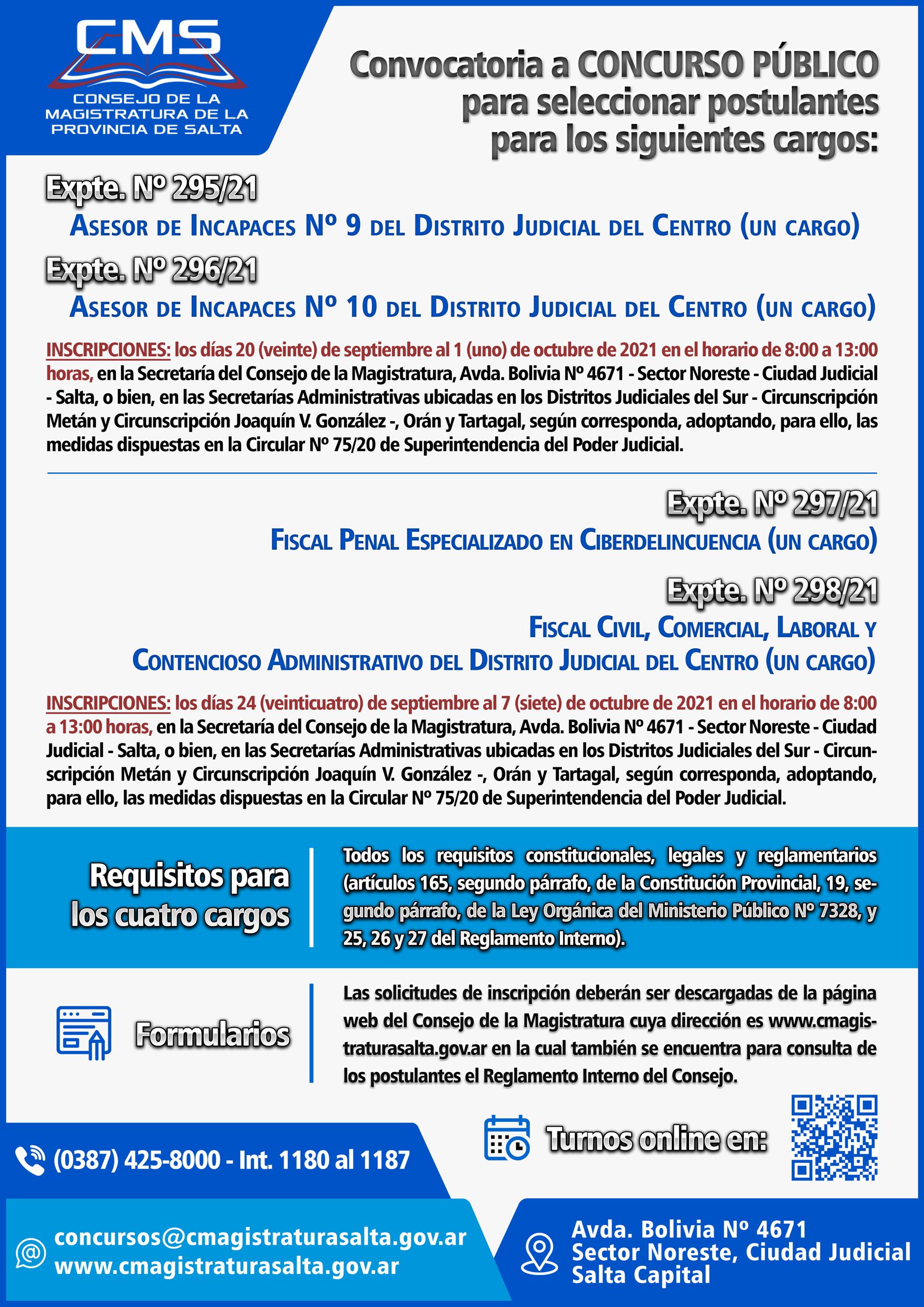 El lunes 20 de septiembre comienzan las inscripciones en los concursos para cubrir los cargos de Asesor de Incapaces Nº 9 y Nº 10 del Distrito Judicial del Centro.
