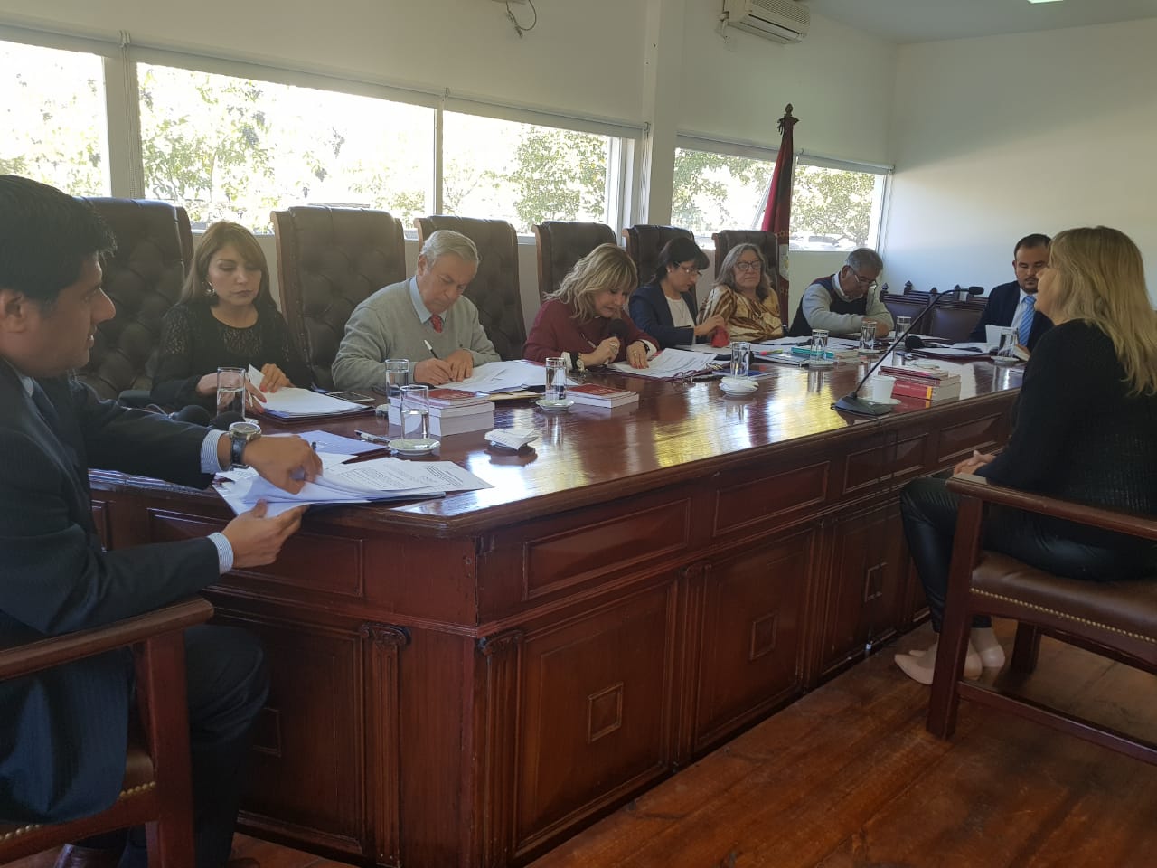La jueza de la Corte y presidenta del Consejo de la Magistratura, Sandra Bonari, junto a los integrantes del tribunal